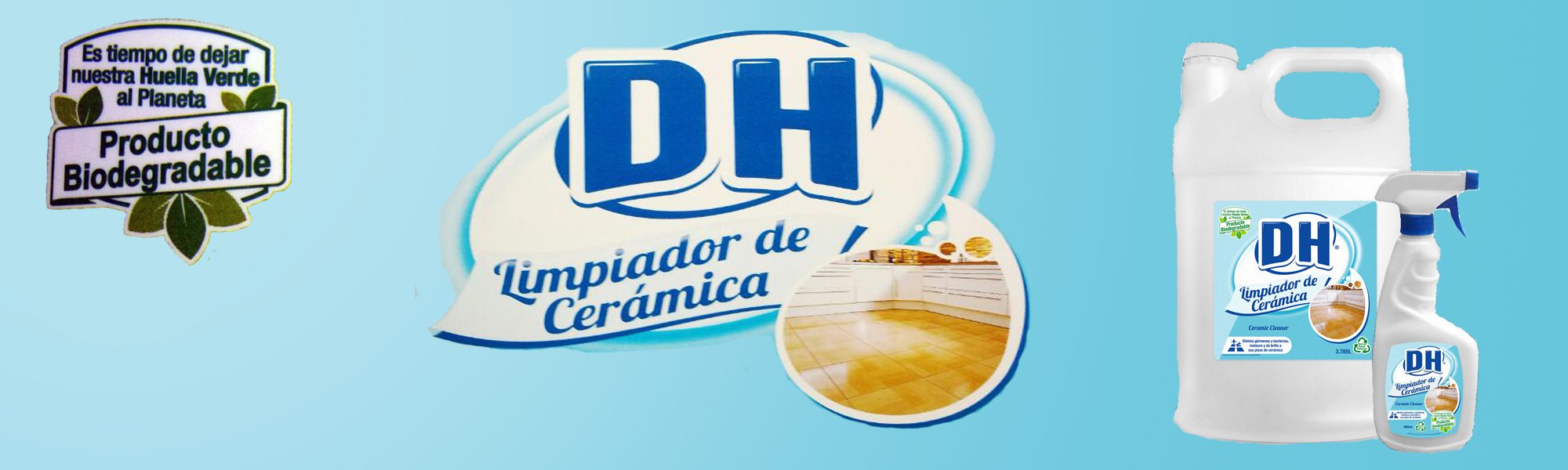 Limpiador de cerámica DH desinfecta, restaura y da brillo a sus pisos de cerámica y porcelanato. Producto hecho a base de Alcohol graso etoxilado, Dietanolamida de coco.